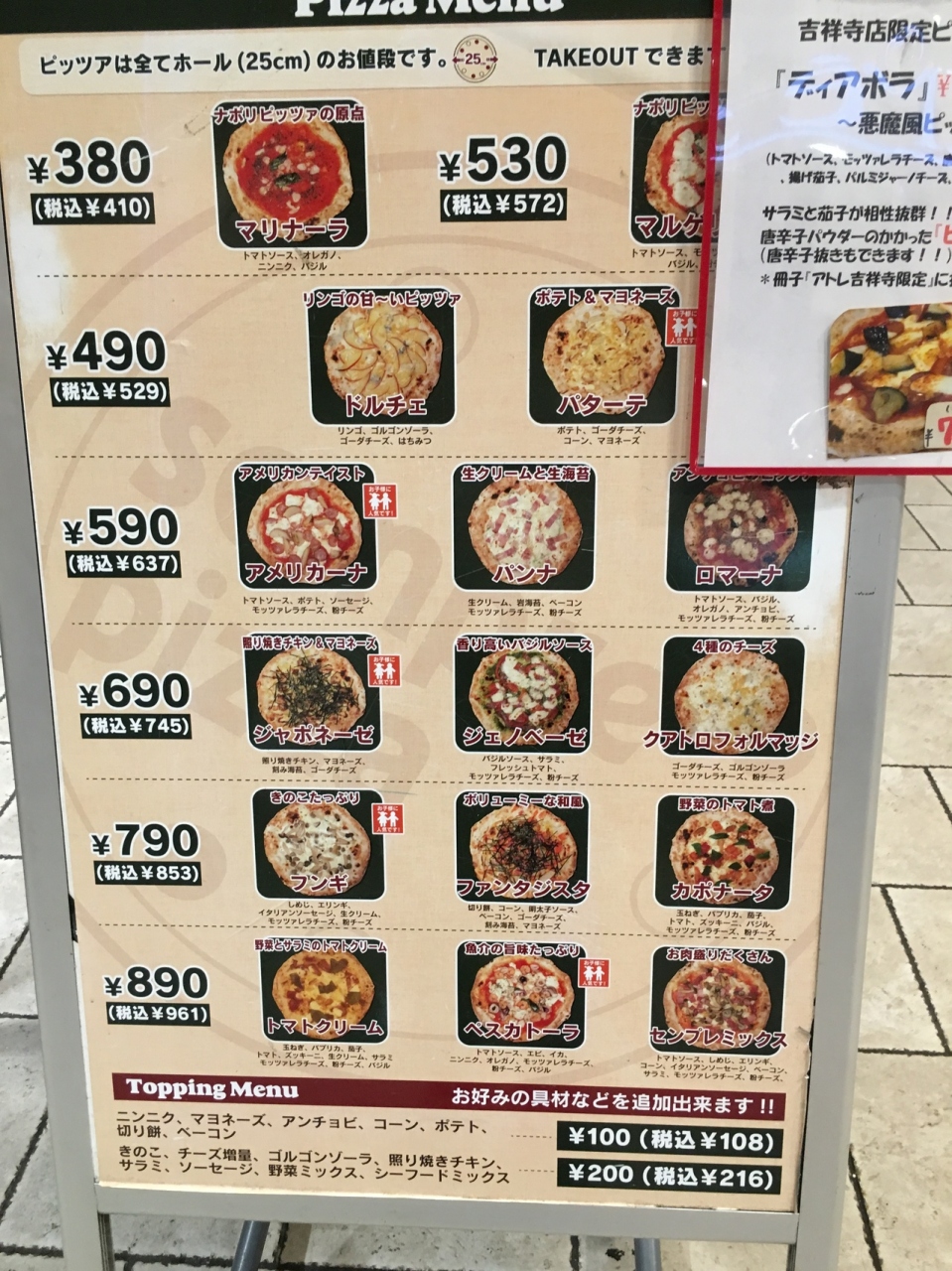 アトレ本館西口にあるピザ屋さん。注文してから焼いてくれます。その日は25分かかると言われ、その間アトレをブラブラ、お店が沢山あるのですぐ時間がたちました。