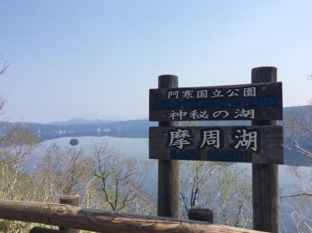 レストハウスの中を通り外に出ると眼下に摩周湖が見え島と火口が見えました。さらに階段を上がると屋上が展望台となっています。お土産や軽食コーナーがあり、観賞用のまりもの販売もあります。また四季の摩周湖のビデオが見られます。今回は桜が咲きうぐいすの囀りが聞こえてきました。