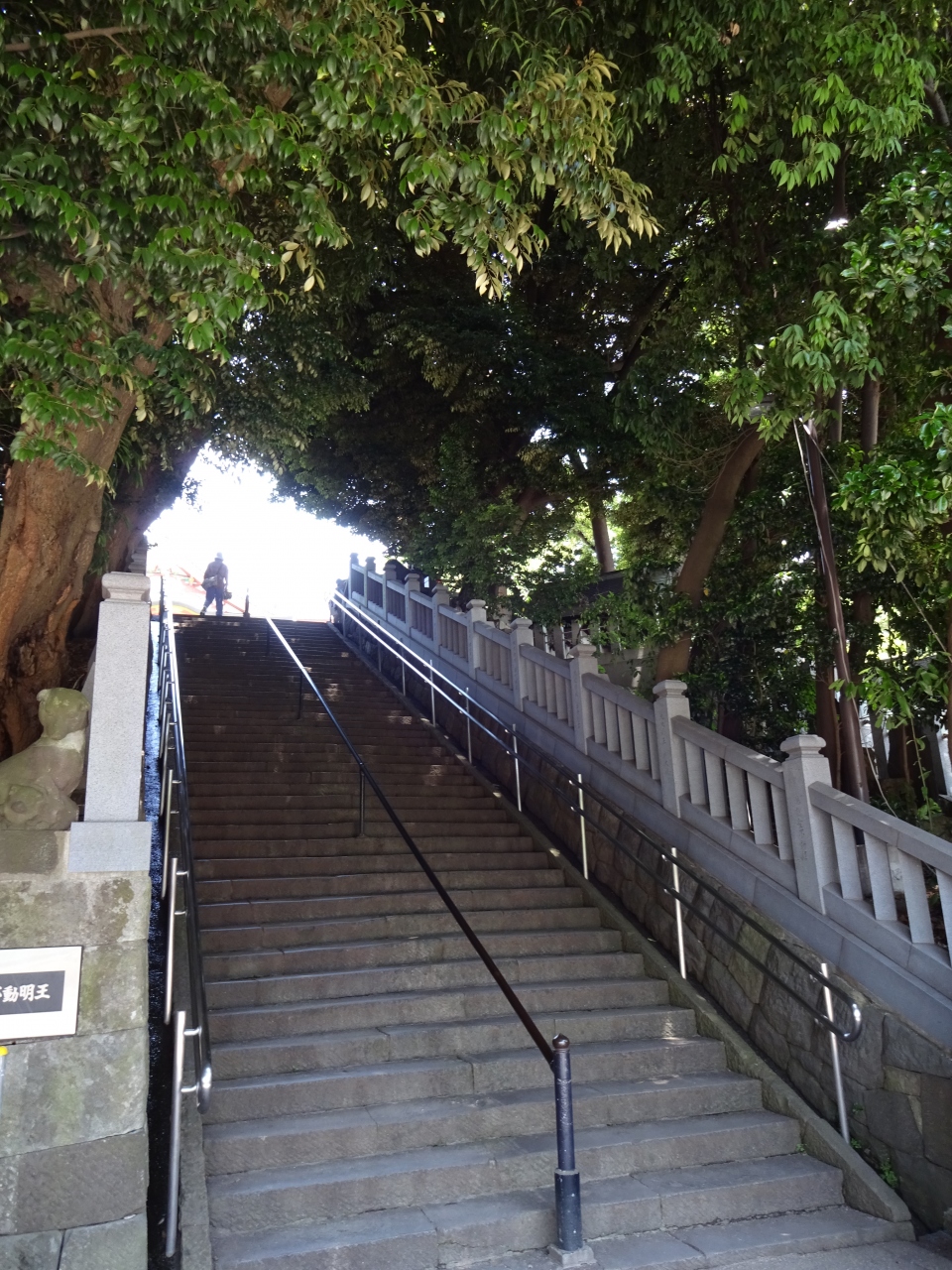 目黒駅から10分~15分程歩くと『目黒不動尊』、目黒は坂の多い街だからここまでも坂を下ってきました。徳川家の庇護を受けて繁栄し、目黒御殿と称されるほど栄華を極めた、関東最古の不動霊場。急な階段を上がると本堂です。