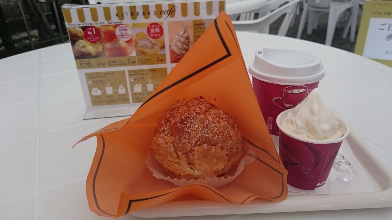 ミニソフトクリームとドリンク、好きなシュークリームかバウムクーヘンが選べます。