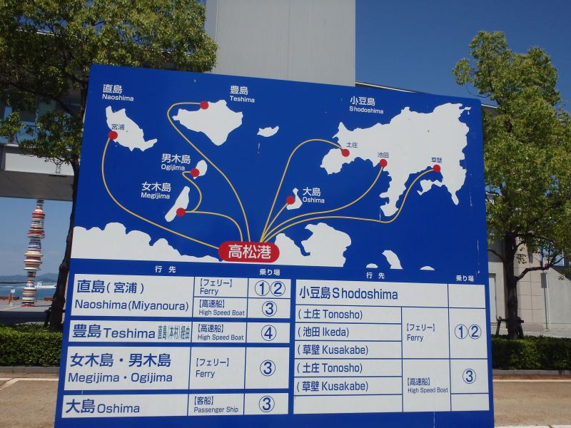 四国フェリーや雌雄島海運などで宇野、小豆島へ行ける