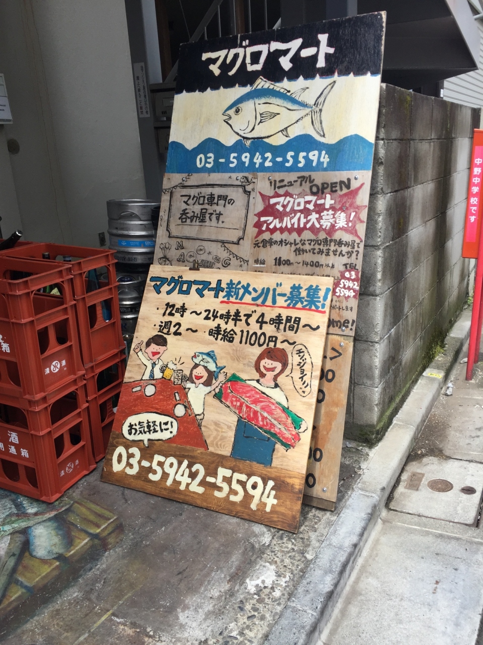 念願だったマグロマートに行ってきました。中野駅からは少し距離があり、早稲田通りを越えて1本路地に入ったところにあります。骨のついた大きなマグロをみんなでスプーンですくって食べるのが美味しくて楽しかったです。