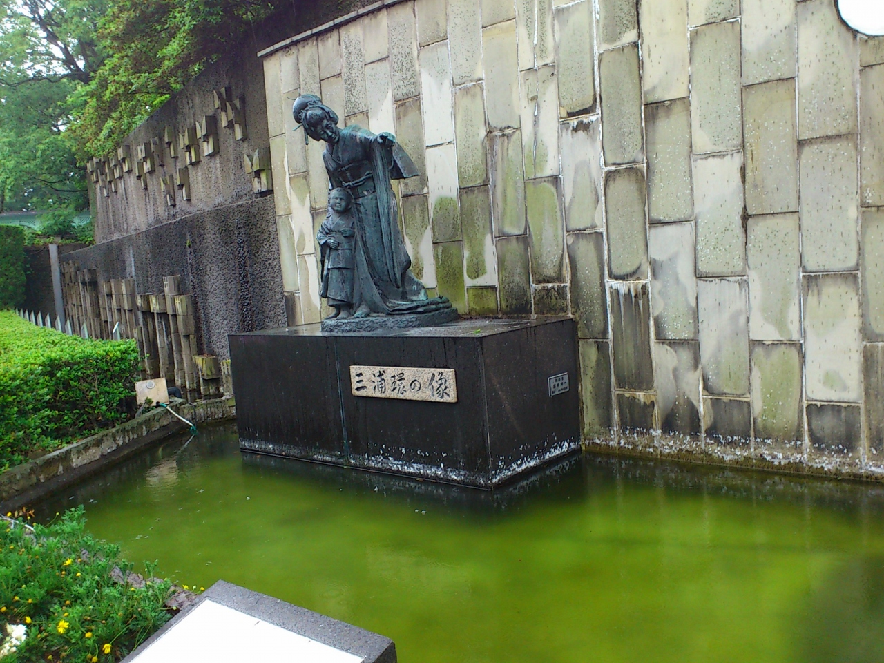 なあ先のグラバー園の中にある像です。子供を右手で抱え、左側を指し示している姿をしています。三浦環は日本が生んだ世界的プリマドンナで、イタリアの作曲家ジャコモ・プッチーニが長崎を主題としたオペラのマダムバタフライ(蝶々夫人)の主人公です。