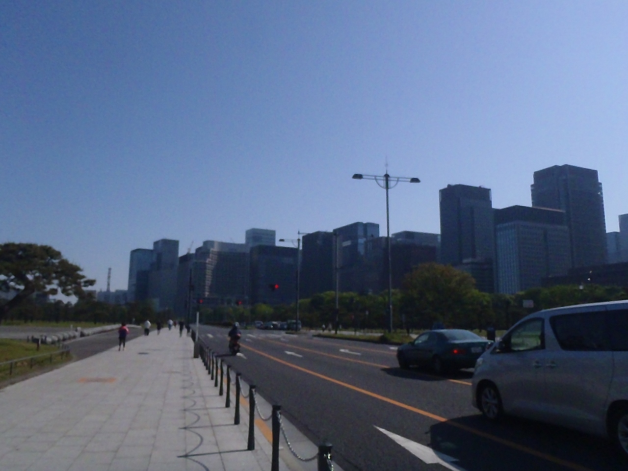 皇居で式典や一般参賀、通り抜けなどがあるときには多くの人で渋滞しますが、通常は都会のオアシス的な景観の通りで、多くのランナーが行きかう通りとしても有名な通りになっています。