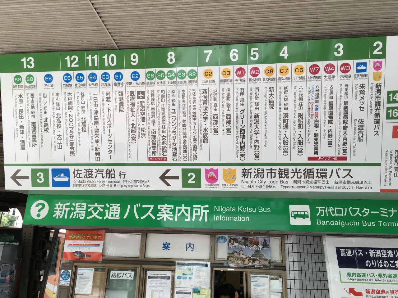 新潟駅のバス乗り合い場、万代バスセンターには多くの人が集まります。
