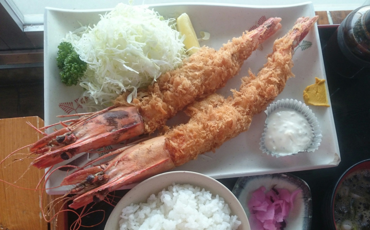 肝心のお化けエビフライは巨大で、一人では食べきれないほどです。