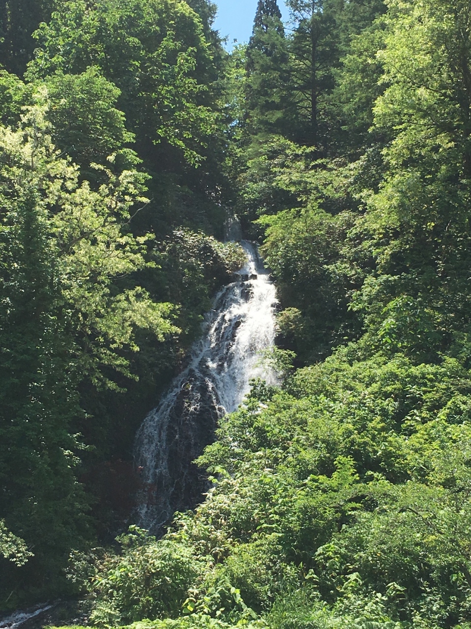 小坂から十和田湖に抜ける県道2号線沿いにあり、道路からも滝が見えるほど近くにありました。道路向かいに、道の駅七滝がありました。水車小屋や神社もあり、落差60mあり、道路から近いので、立ち寄りに最適でした。