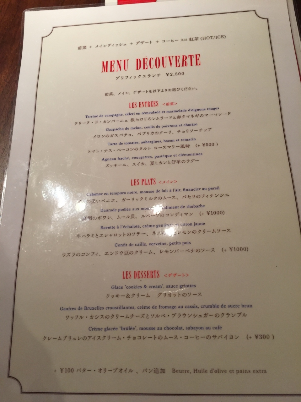 あまりフレンチを食べないですが、神楽坂に来たのだからフレンチをと思い行ってみました。平日のランチなのに混んでて驚きました。フレンチなので時間に余裕のある女性が占めていました。1000円ランチはお魚とお肉を選べます。今回は豚肉とトマトのファルーシでしたが、スープもファルーシもレベルが高くてビックリ!本場で食べるより私の口には合ってました。今度はディナーで利用したいです