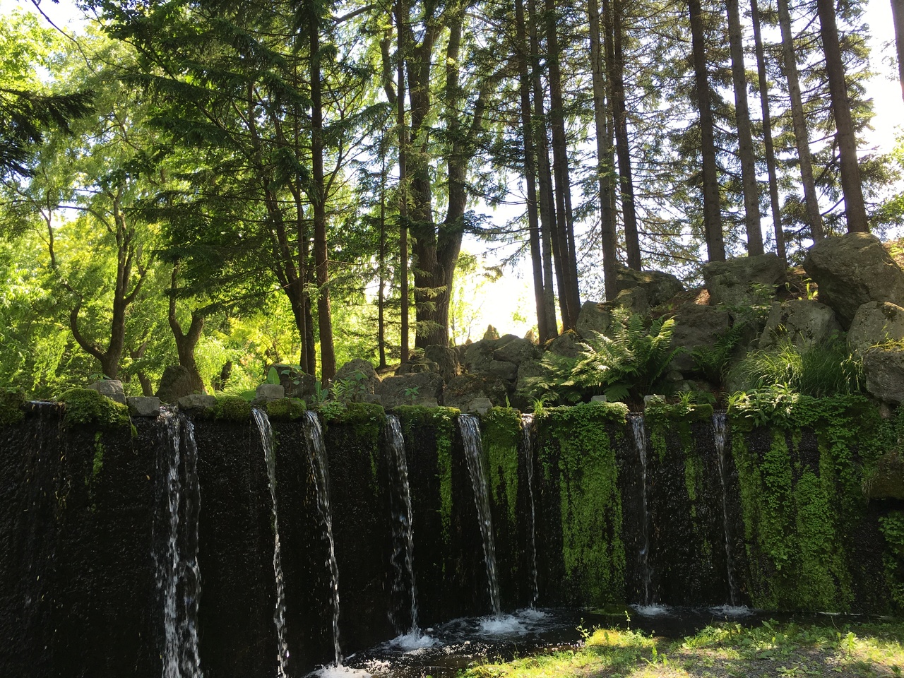 門をくぐり進んでいくと、日本らしい風景があり、さらに林を抜けると、北欧のヒバ系の風景になっている。さらに奥に進むと、滝や池があり、水の豊かな風景がひろがる。最後の木のボーダーガーデンは、都会の公園のよう。全てが自然に流れるように見て回れました。とてもよく設計されていました。