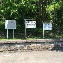神居古潭のつり橋を渡り、そのまま小高い山を登ると右手に函館本線の旧神居古潭駅舎が、左手には蒸気機関車が現れます。