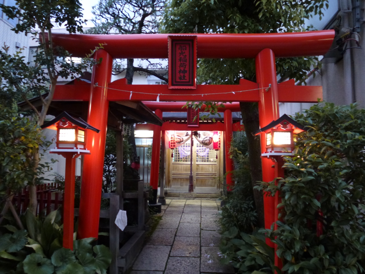 「船光稲荷神社」は、現在工事中のエイベックス本社ビル脇から外苑西通りと並行して走る裏通り沿いにあります。