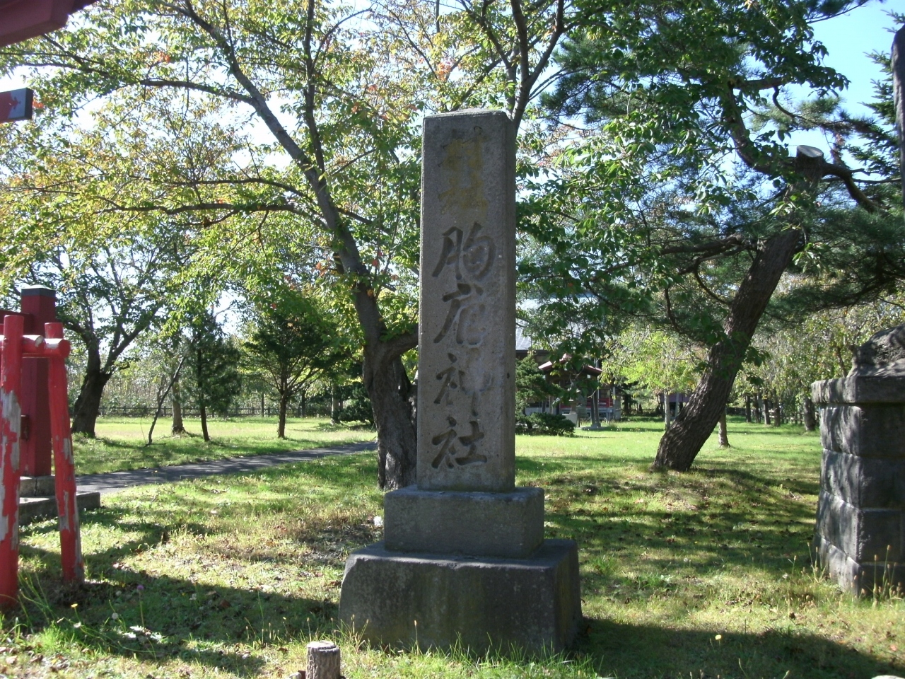向かいにある「五所川原市歴史民俗資料館」を訪れたときに、大きな赤い鳥居のそばにある「胸肩神社」という社号標に気が付いて、“胸肩”とは面白いと思って調べてみたら、全国各地に存在し、福岡県宗像市にある宗像大社を総本山とする宗像神社(むなかたじんじゃ)が、胸形神社、胸肩神社などとも表記されることを知りました。