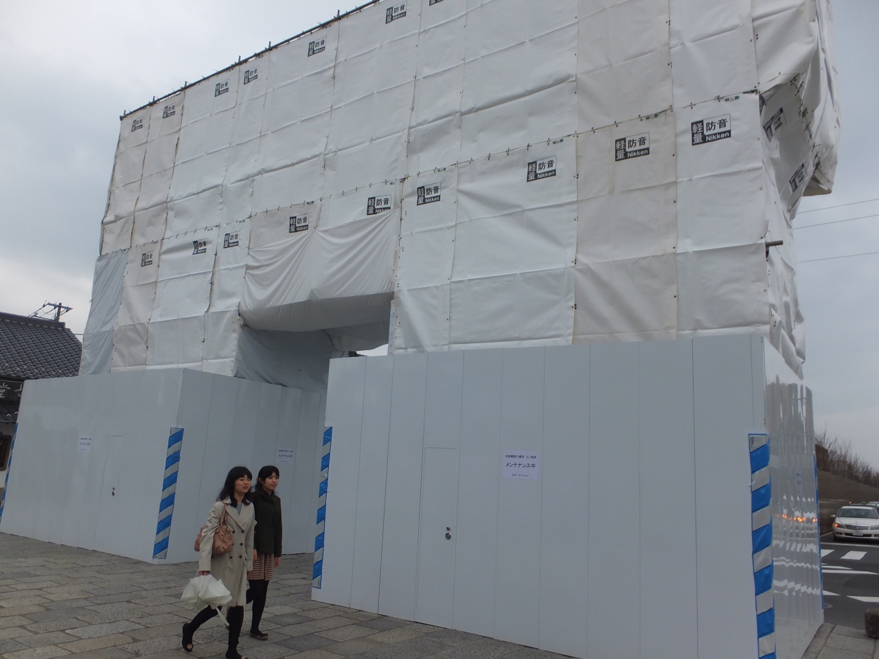 ここが一の鳥居と勘違いしている人が多いが、あくまでNo.3である。本宮からこの鳥居と段葛を見下ろすのが定番なのに、メンテナンス中で実に残念であった。鳥居好きというのがいるのか知らないが、他にも6個ぐらいあるのでそちらで我慢してもらうしかない。同時期に段葛も大仏もメンテ中。無念。