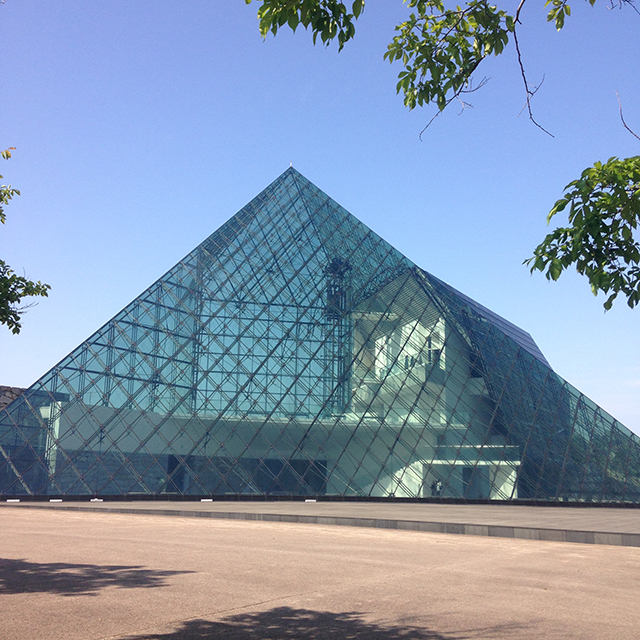 ガラスのピラミッドの中は月曜日でも見られました。一部ギャラリーが見られなかったけど、月曜日が理由かはわかりませんでした。イサムノグチグッズが販売されている売店も休みでしたが、自由にみることができ、近くの事務室に声をかければ購入も可能なようです。