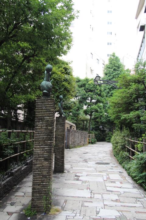 川の暗渠でしょうか蛇行した小路があります。新宿らしくなく木々が茂った散歩道です。 但し、場所柄か浮浪者が道端に寝ていたりしていてちょっと驚きました。 日中はそれなりに雰囲気があってよいのですが、夜間は歩かない方が良さそうです。