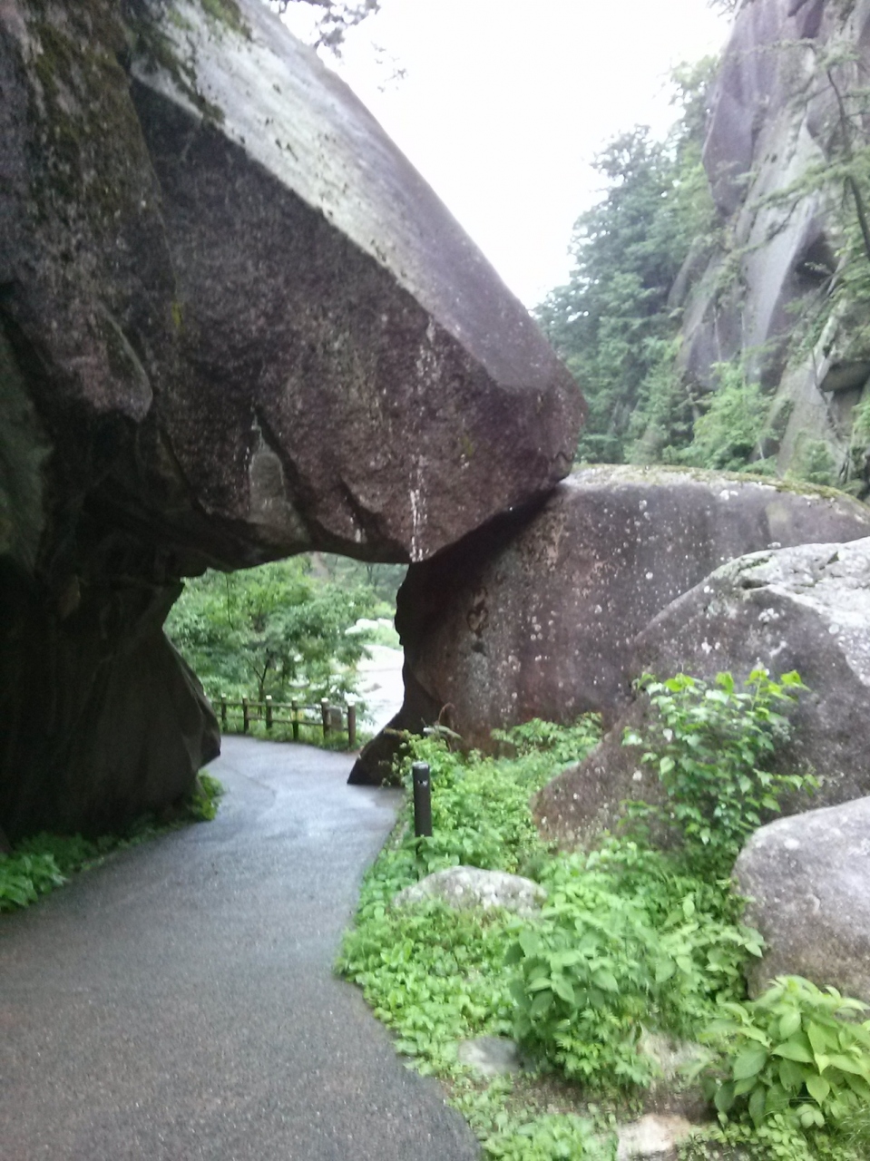 山梨に来たからには見せてあげたかった「昇仙狭」。岩と岩の間から流れる滝、大きな大きな岩が水によって削られた様子、岩が崖のようにそびえ立ち崖にも植物が育っている様子、崖にモヤがかかりまるで仙人が住んでいるような場所...手つかずの自然の力を感じられる景勝地です。