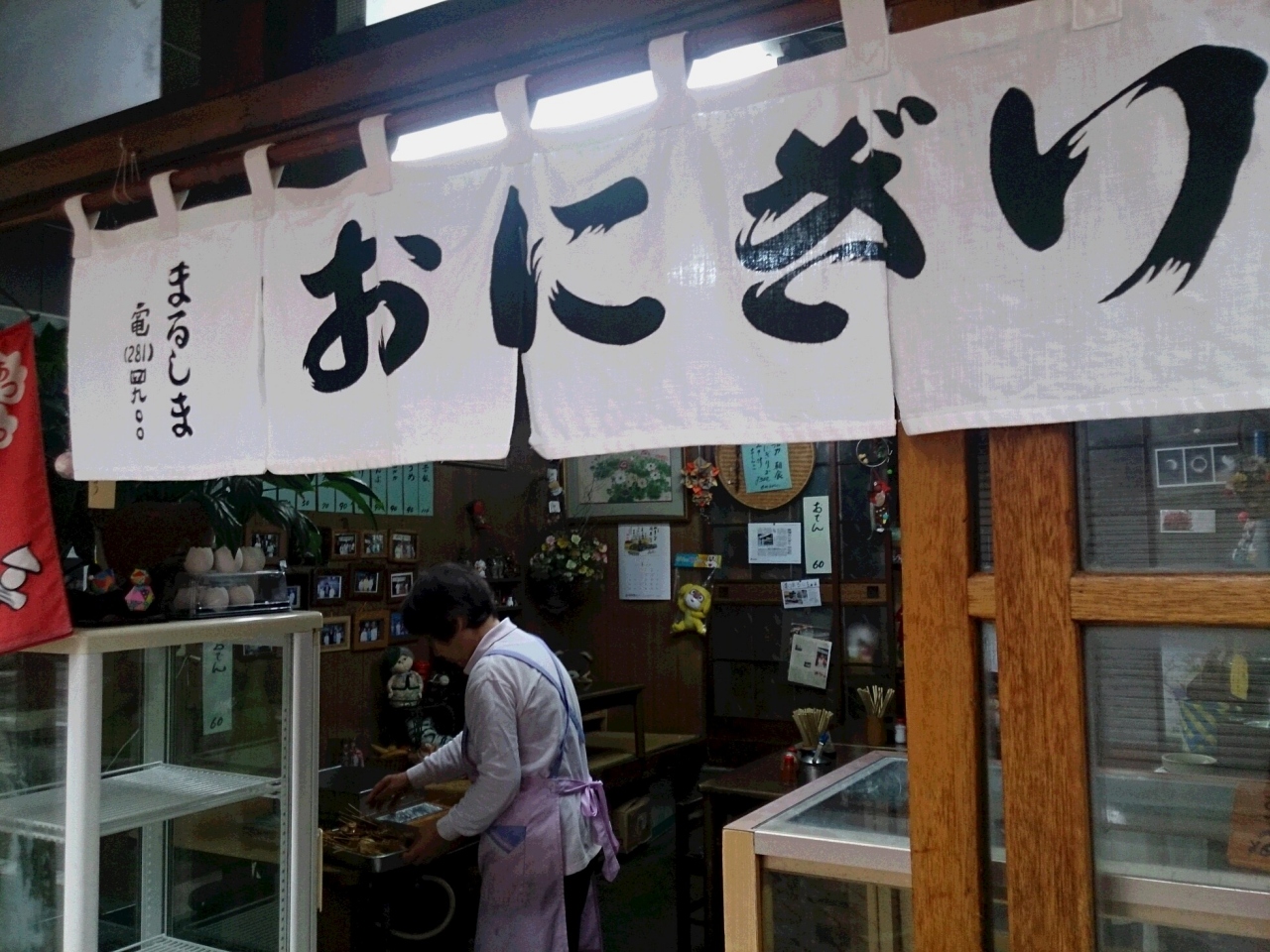 鈴岡に宿泊したとき、朝駅に向うとき見つけたおにぎり屋さんです。このレトロなたたずまい。これを見せられたら、寄るしかありません。おにぎり2個とみそ汁、おしんこの朝食とおでんをいただきました。普段、朝食を取らない私としては、食べすぎですが、暖かいおにぎりに暖かいみそ汁、味のしみたおでんは、最高のごちそうでした。おしんこの量も多く、味も最高。大満足で一日のスタートが切れました。朝は、6時30分からやっていて、おでんも食べられます。こんな店が日本にあったなんて、立ち寄れただけで幸せです。