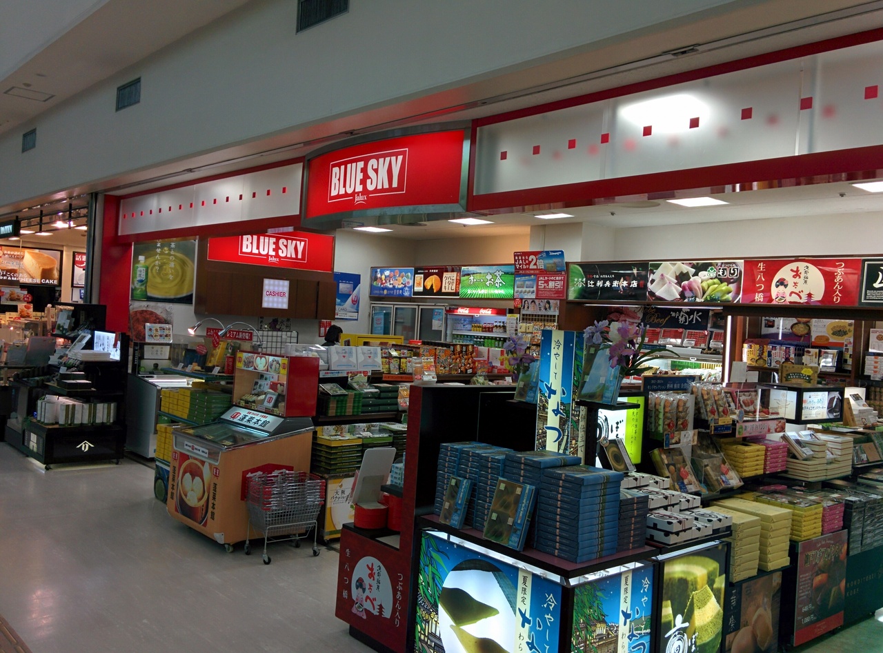 この「ブルースカイ」のお店は、空港ではお馴染みのJAL提携のお土産物屋さんです。