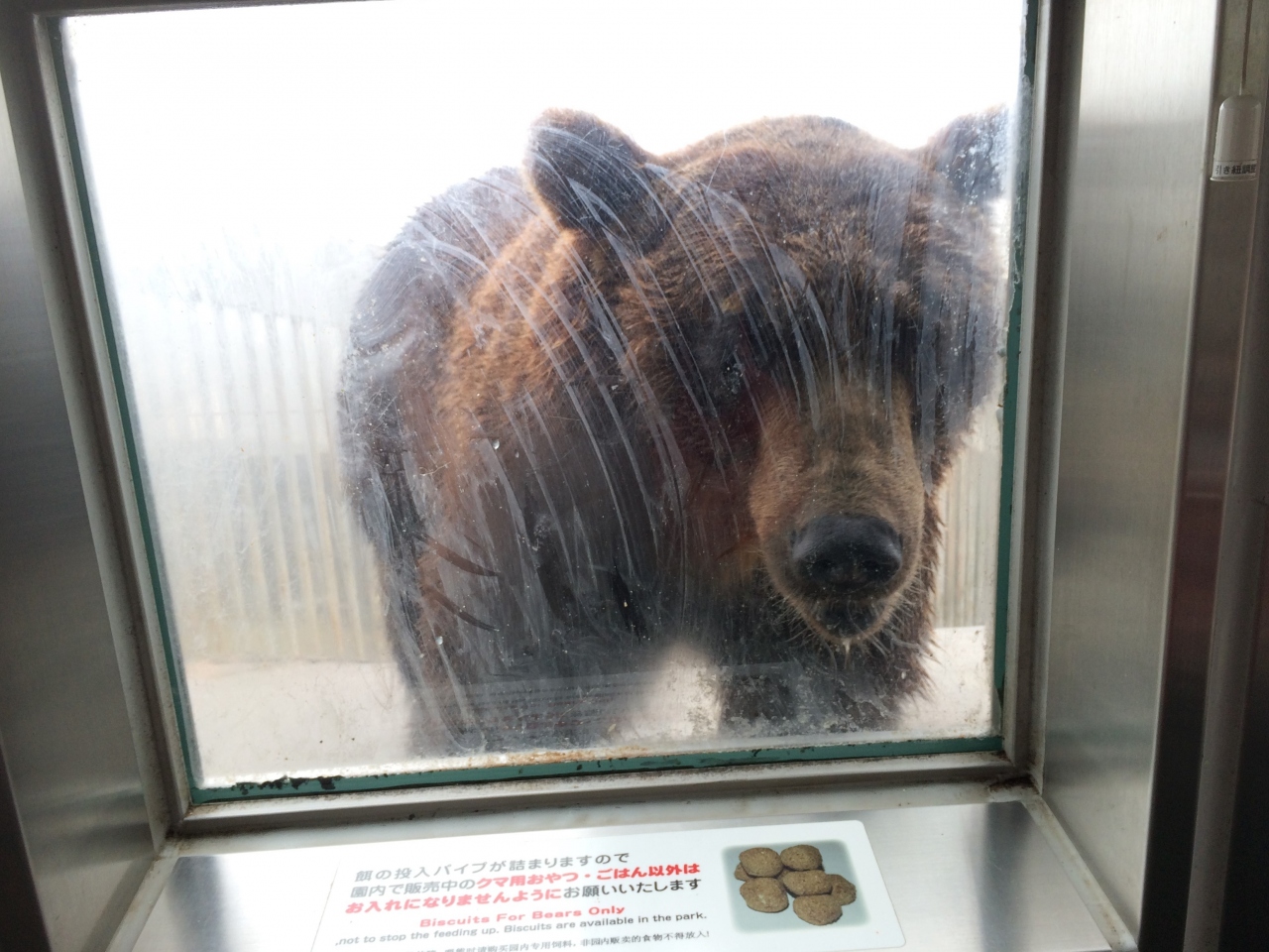 ガラス越しにクマを見られるエリアでは、臨場感たっぷり!!