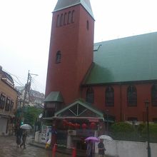 長崎の観光名所の大浦天主堂のすぐ近くにある教会です。レンガで出来た外壁に緑色の屋根が載っていて、とても目立つ外観をしています。大浦天主堂があまりにも観光地化して、お祈りには適さなくなったので、ここを建てたのだそうです。