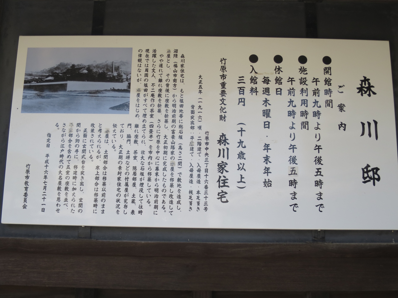 竹原の町並み保存地区から少し離れ、住吉橋を渡った左手に市の重要文化財にしていされている森川邸があります。立派な門を潜ると大正期の豪邸が姿を現します。入場料は300円。松阪邸等にも行くのならば共通券を買うのがお得です。