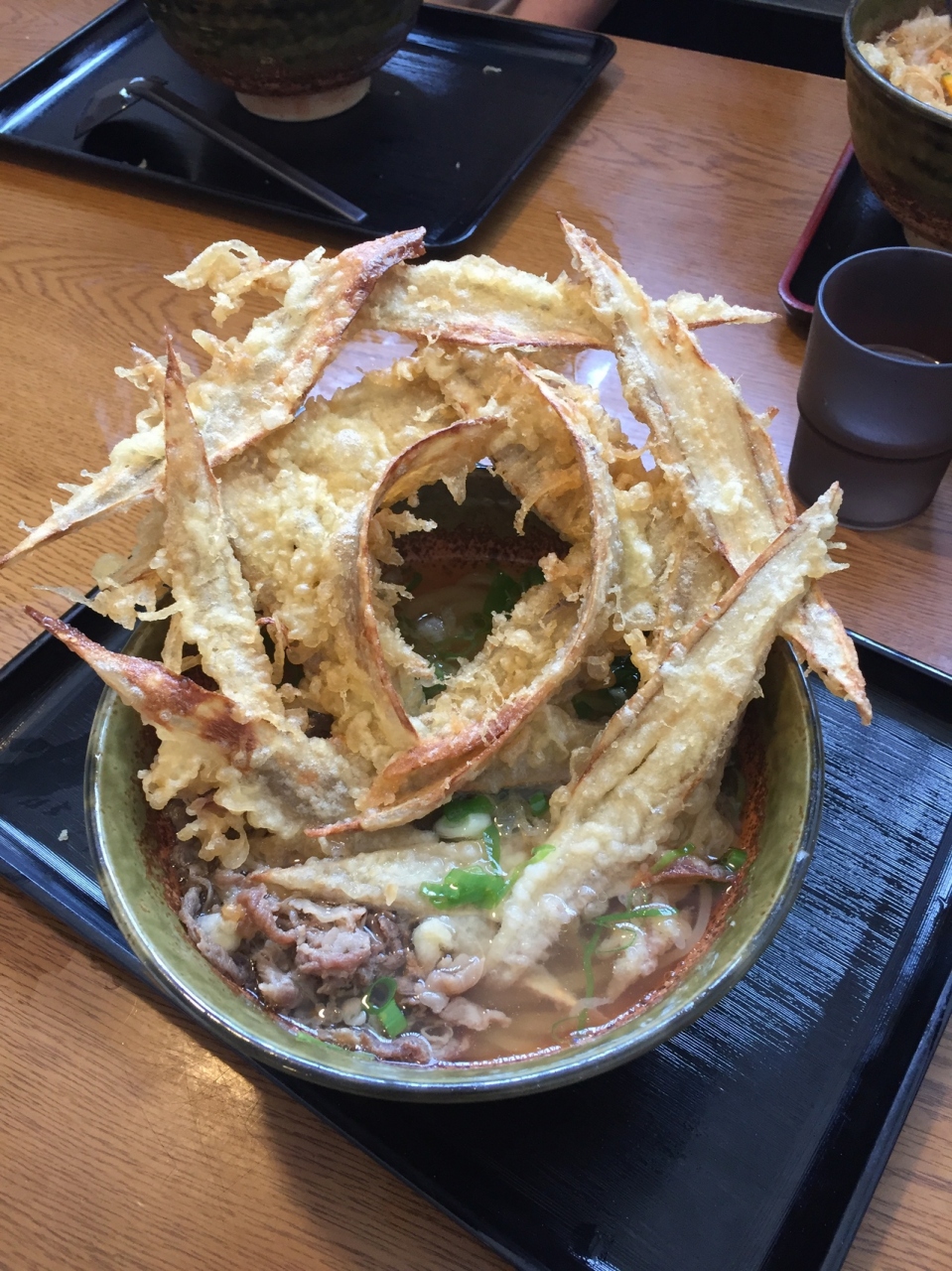 さらに、ごぼう天ぷらは、器からはみ出る大きさで食べ応えがあります。こちらもインパクト大です。