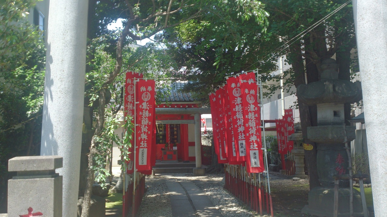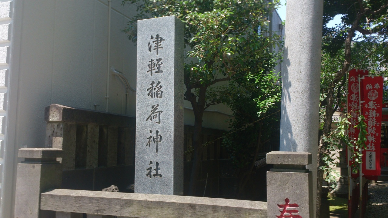 錦糸町駅から歩いて8分くらいにある小さな神社が津軽稲荷神社です。もともとは津軽藩下屋敷の屋敷神だったそうです。今は錦糸町一丁目会の守護神としてまつられているそうです。となりの公園からは東京スカイツリーが見ました。
