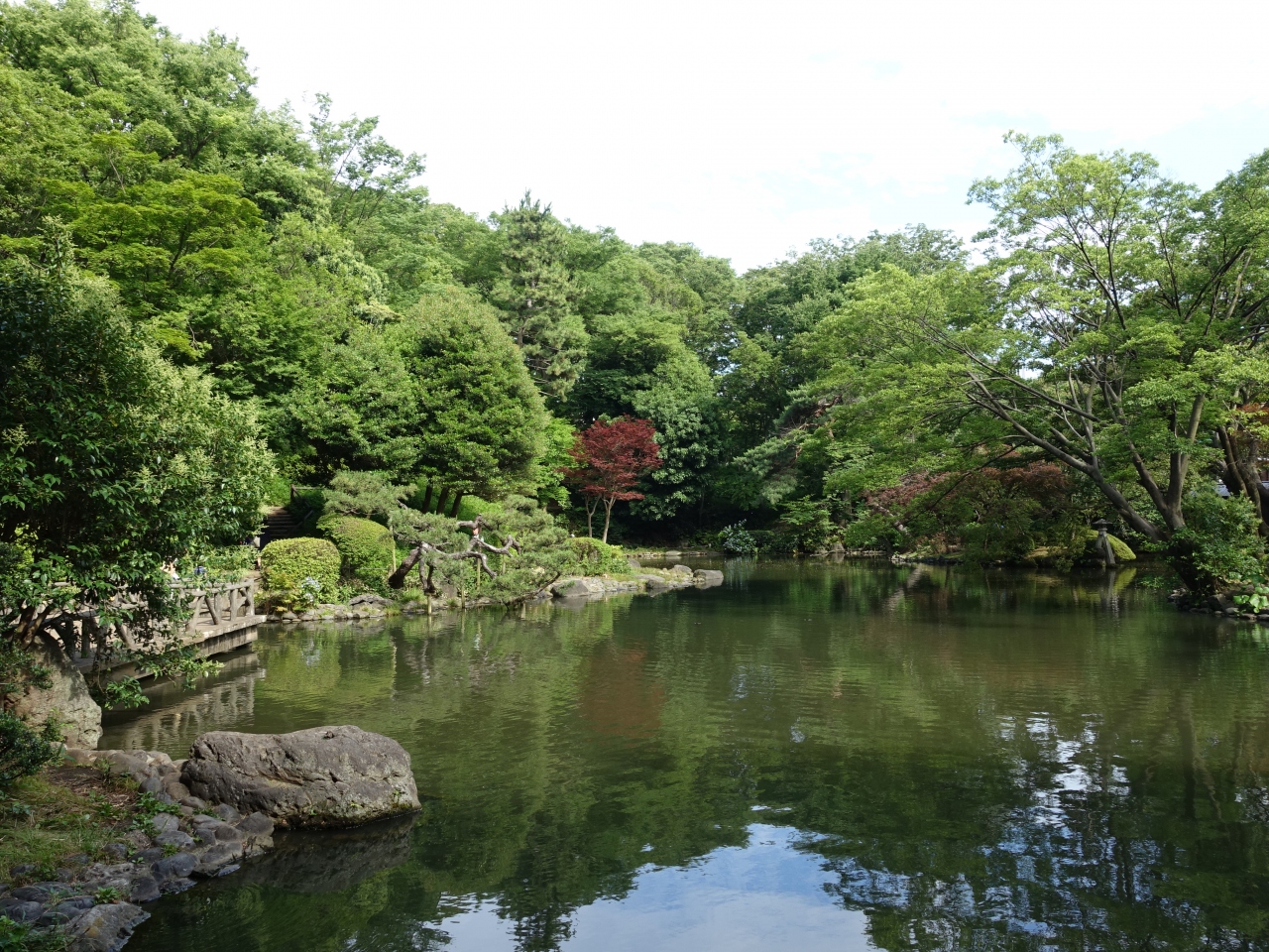 木々の緑がとても濃く、公園の光景がとても美しい時期で、晴れ間もありなかなか心地よかったです。