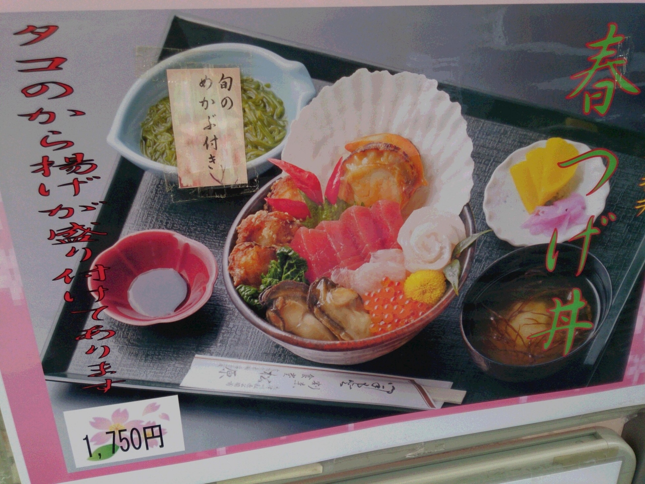 南三陸は、復興に向け新グルメ「キラキラ丼」が有名ですが、普通の刺身もおいしいです。ここの店では、刺身とから揚げが一緒になった「春つげ丼」をいただきましたが、やはり刺身は刺身だけのほうが良かったです。味が混ざって微妙でした。地元の人が多かったせいか、あまり海鮮を食べている人はいませんでした。営業時間は、午前11時から午後7時までですが、昼すぎに閉めていることがあります。ご注意を。