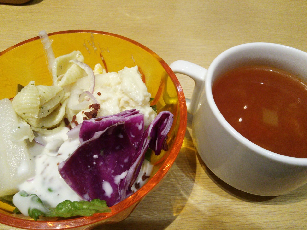 メインのお料理を注文すると、サラダ、スープ、デザート、フライドポテトなどのビュッフェが付いてきます♪