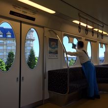 朝6時半過ぎに乗車したら、一生懸命に車内を掃除しているキャストさんがいらっしゃいました。