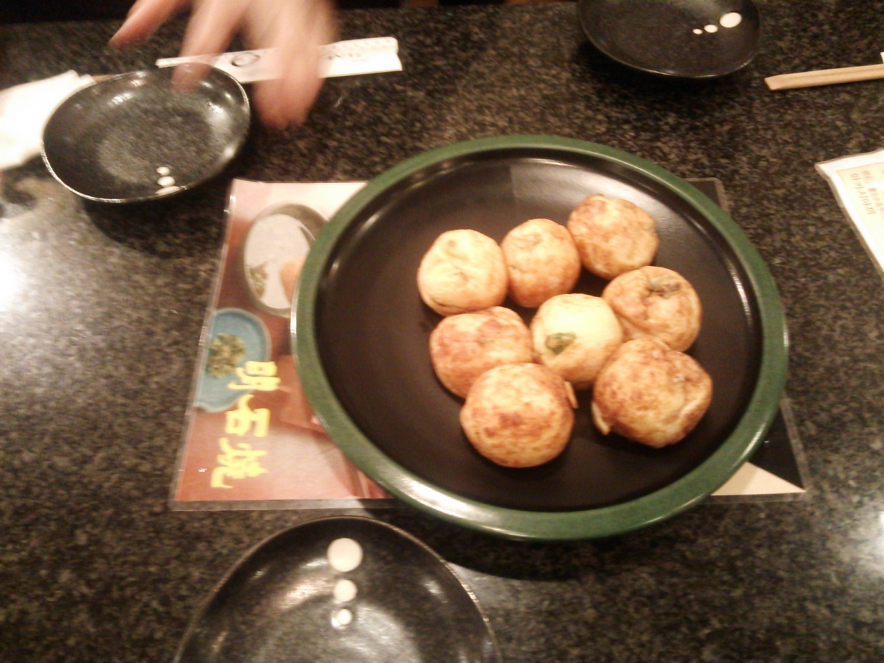 ここはたこ焼きの種類が多く、また明石焼きもあるので、人数がいれば種類をたくさん頼んでシェアするといいかと思います。