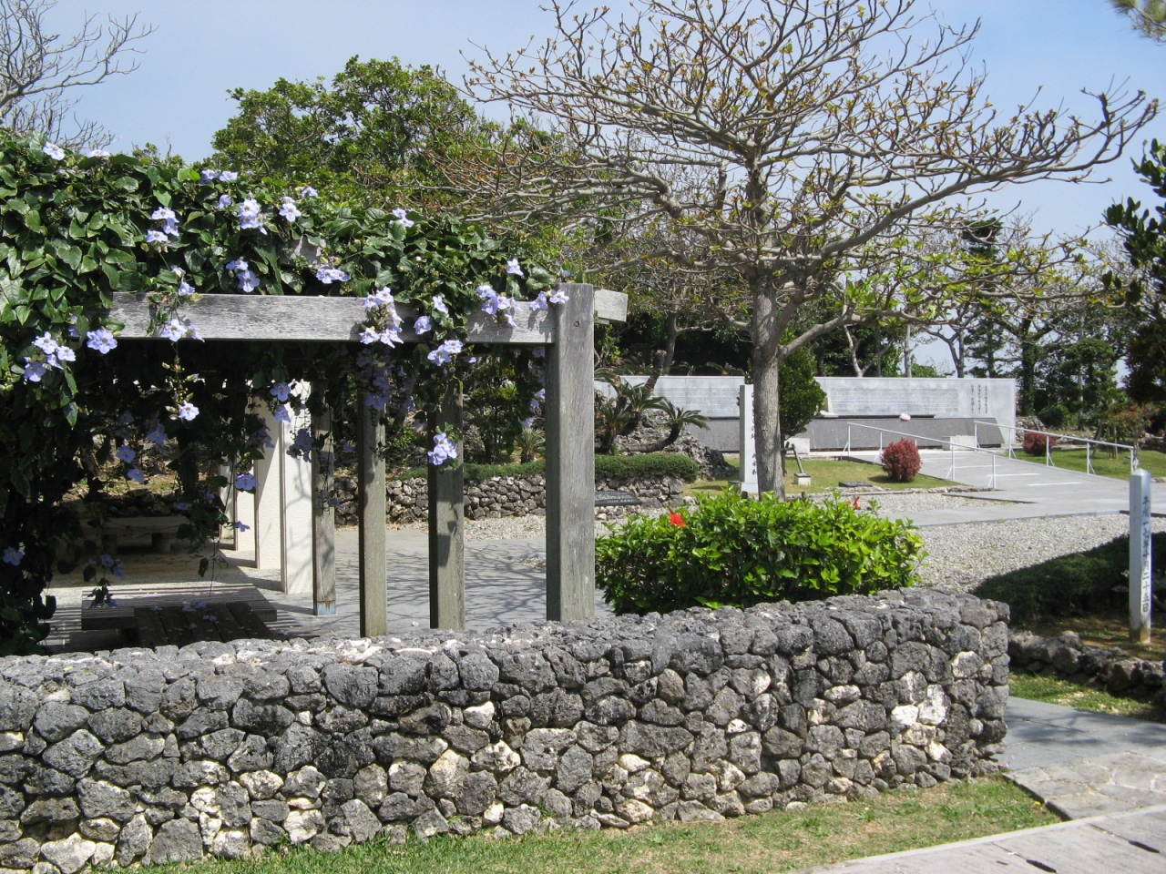 敷地内には、植物棚の下にベンチが置かれた休息所があり、訪れたときは日差しが強かったが一休みするのによかったです。