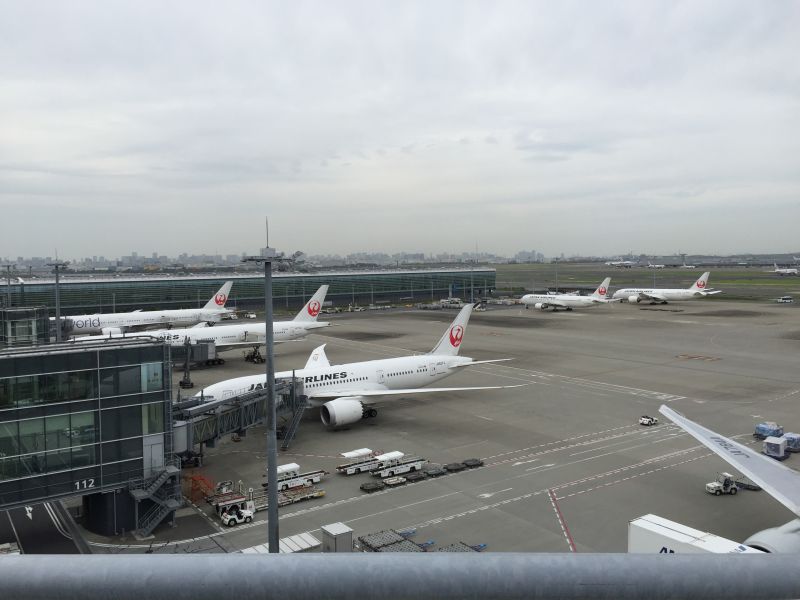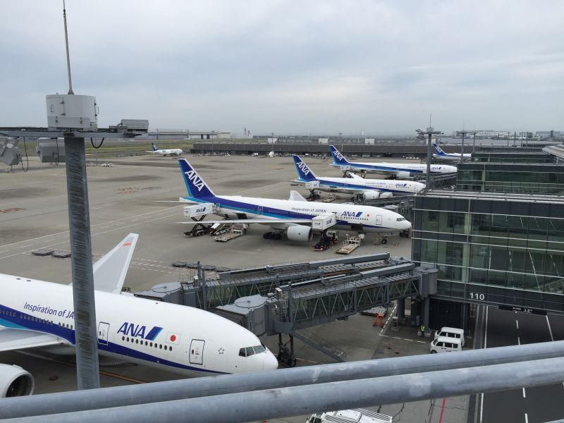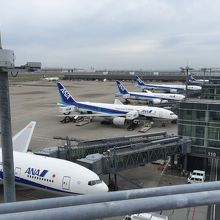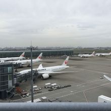 左手にJAL機がいっぱい見られました。右手にANA機がいっぱい見られました。