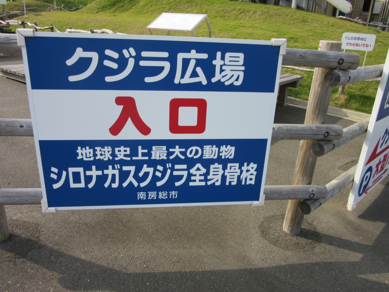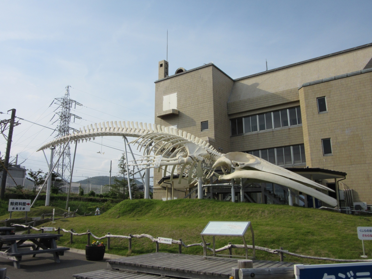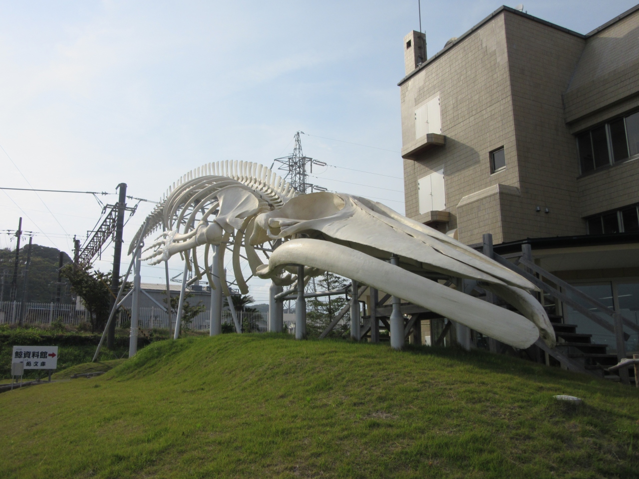 道の駅の西側にクジラ広場があり、シロナガスクジラの全身骨格が復元されていました