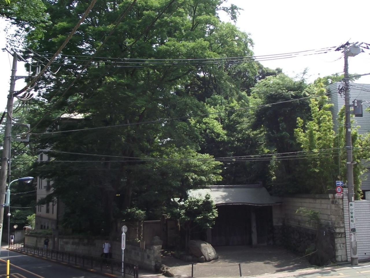 地下鉄・茗荷谷駅からほぼ北方向に歩いて数分の教育の森公園の東側出入口の前、湯立坂の坂上にあり、表門が閉まっているので入ることは出来ません。