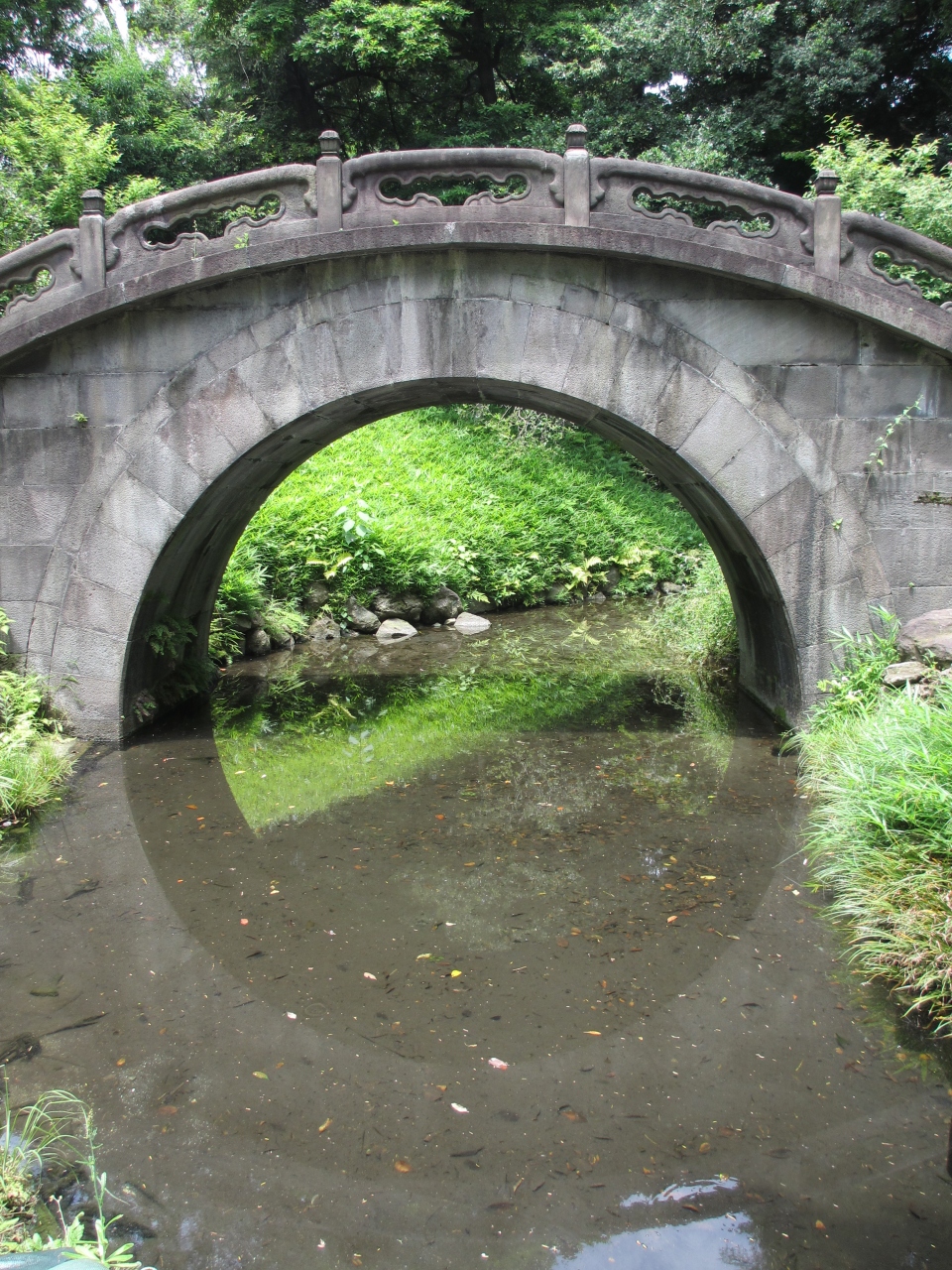 川に映る橋と一体になって円になります