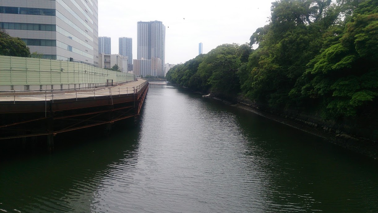 浜離宮恩賜公園の北側に隣接している川でちょうど築地のオフィスビルとの間に流れている川になります。わずか数百メートルの川で、その雰囲気は川というよりは運河というん感じです。海のすぐ近くですので、その流れも澱んでおり全く流れていません。水質についても濁っており、透明さは全くありません。訪問したのが6月の暑い日でしたが不快な臭いは特に感じませんでした。浜離宮庭園の内堀はこの川の水を一部取り入れており、水門が水の出し入れをしているようです。何の変哲もない川です。