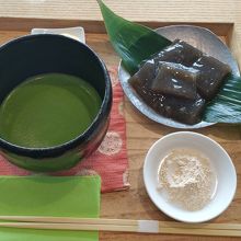 わらび餅とお抹茶のセットを注文しました。とても上品なほんのりとした甘さの、とても柔らかいわらび餅は口の中でとろけそうでした。
