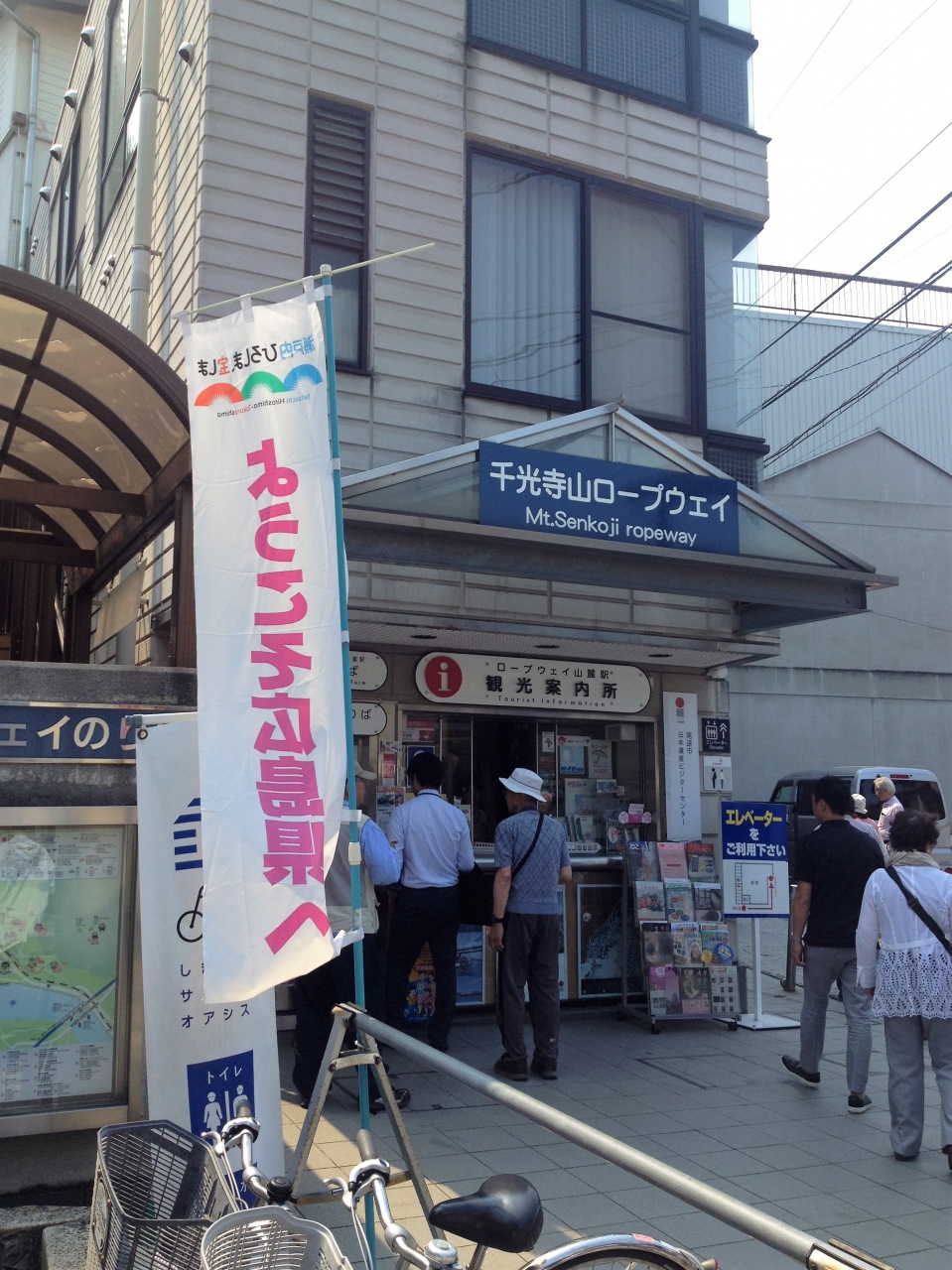 時間があまりなく、往復ともロープウエイを利用しました。尾道駅から本通り商店街沿いを歩くか、バスで一駅ですがバスの本数は多くありません。実際に乗っている時間は3分ほどですが、一応添乗の女性が簡単な説明をしてくれます。