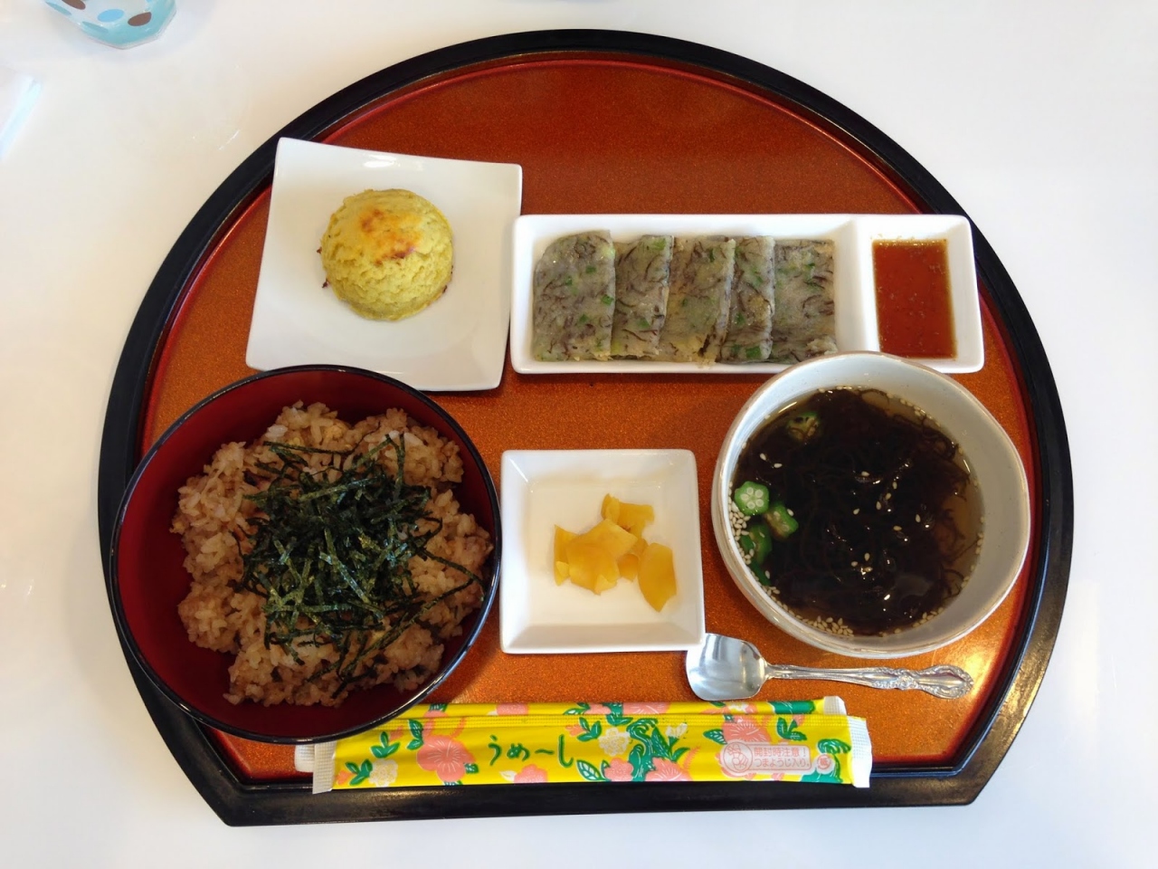 沖縄本島で、海中道路に近づくにつれ、現れる「たこめし」という看板。気になっていたので、あるとき行ってみた。沖縄古民家風なお店を想像していたら、地域のコミュニティ施設のような、立派な建物の中に、お店はある。そして、「たこめし」は、「タコライス」風な料理ではなく、和風のタコ入り炊き込みご飯。あっさりとして、普通に美味しい。