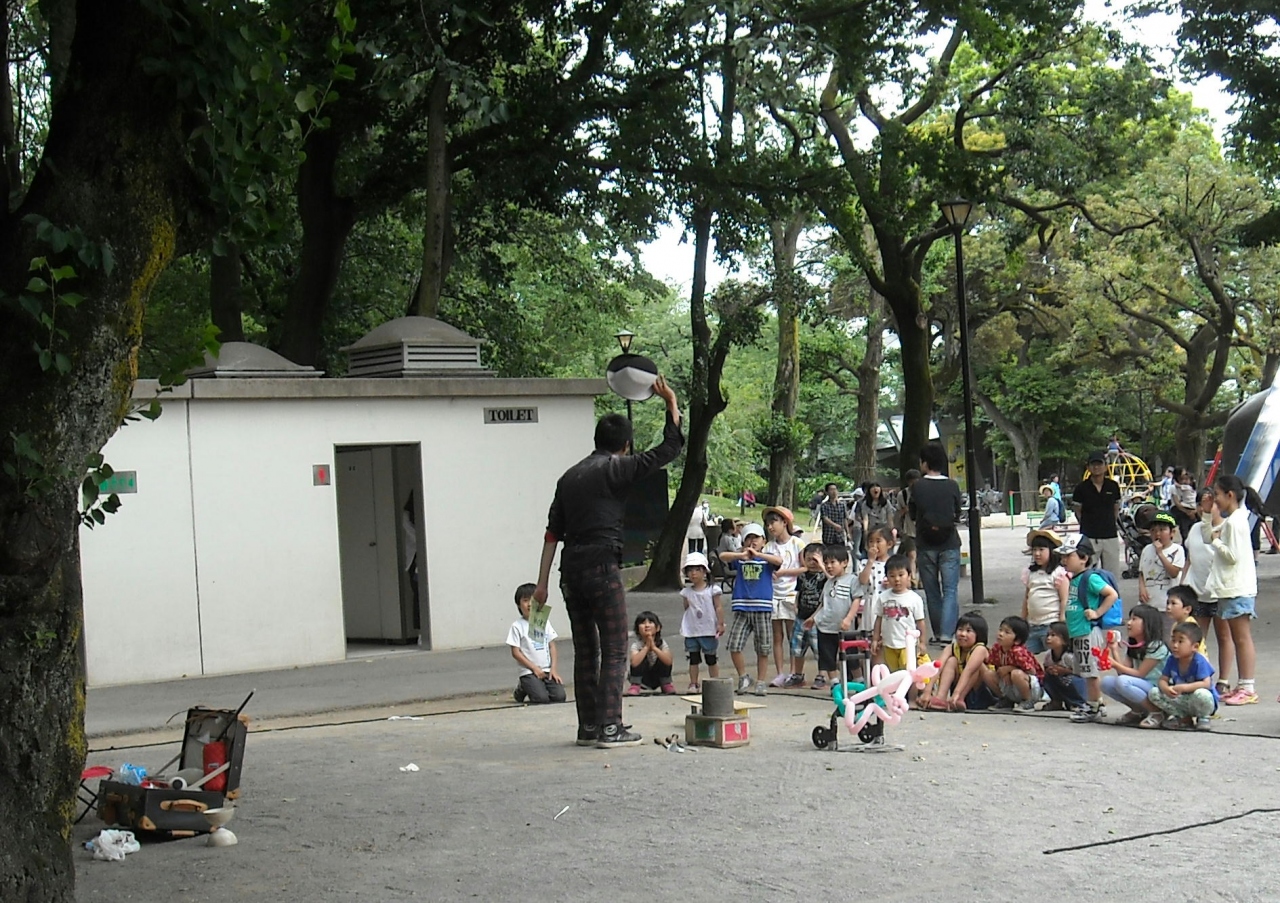 飛鳥山公園のほぼ中央の線路側の崖近く、山の上の小さな土盛りは説明されてももはや痕跡はありませんが、人々が集う中にあり大道芸に子友達の笑い声、人間が近付けない古墳が多い中意外と愉しんでおられるかもしれません。