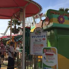 三重県にあるナガシマスパーランド内にあるアトラクションです。人が乗っているのを見ていたら楽しそうで、子供が乗りたいと言ったので、一緒に乗りました。