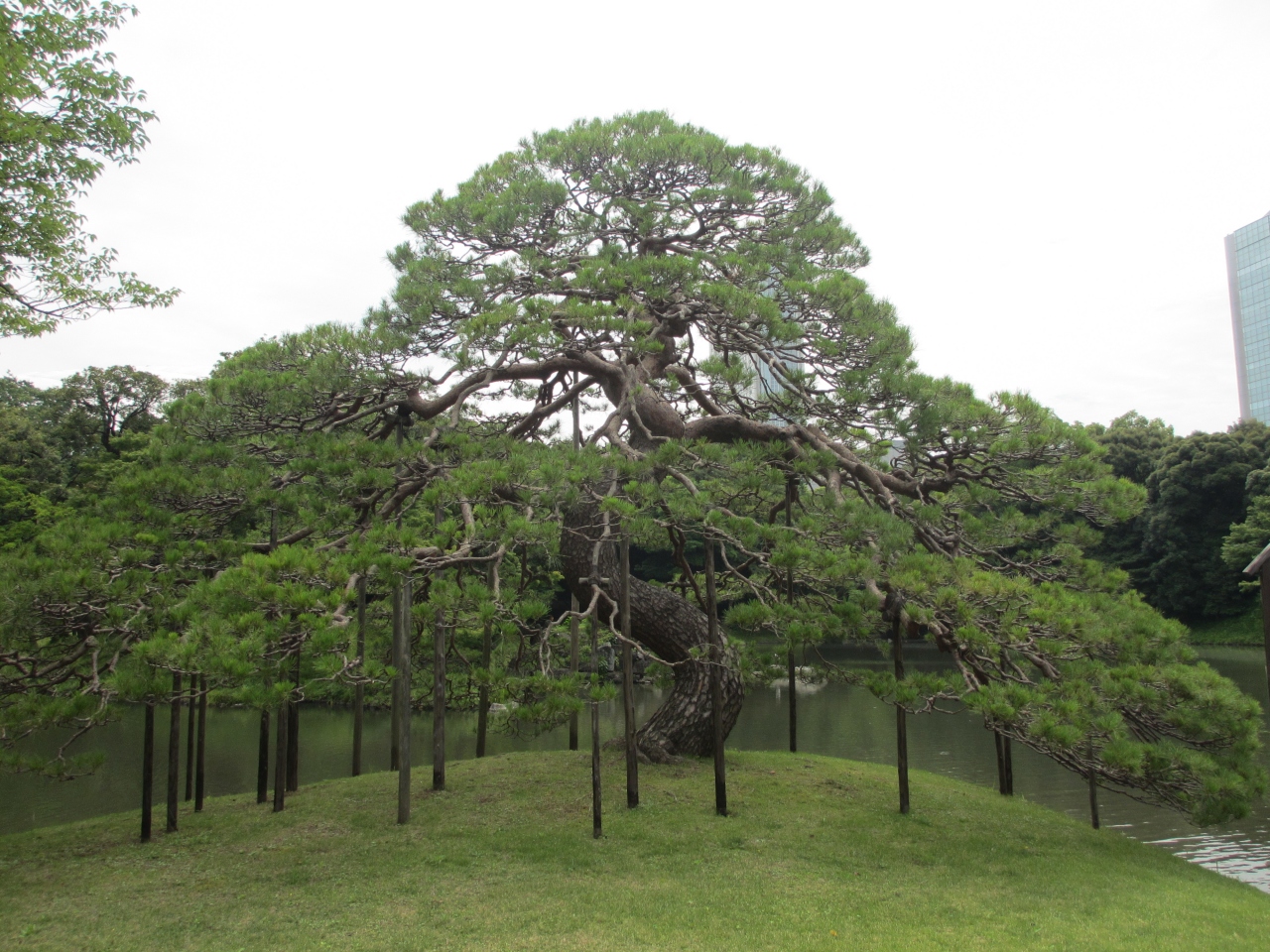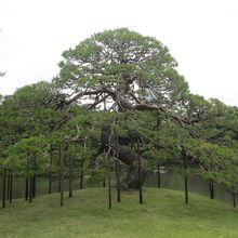 小石川後楽園の入口から見た正面の大泉水に向かう美しい松です。大泉水は琵琶湖を模して造られました。このアカマツは琵琶湖に臨む唐崎の一つ松にちなんでます。冬の前に兼六園の松の雪吊りを真似て一つ松も雪吊りをします。ガイドボランティアさんの話によると東京は雪が降ることが少ないので本格的な雪吊りではないそうです。各庭園が互いに意識しながら維持に努力をしているのがうかがえます。
