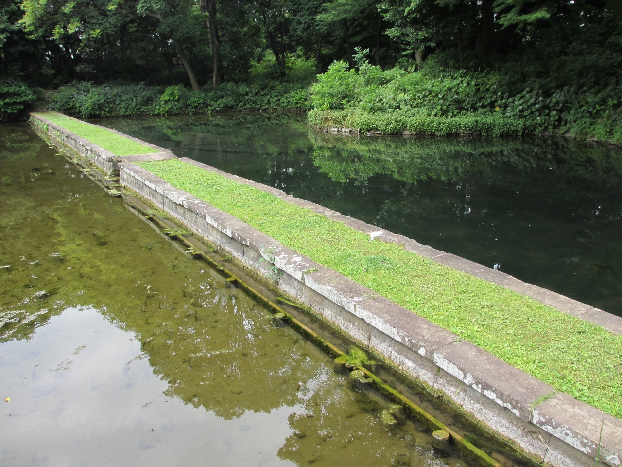 小石川後楽園は水戸藩上屋敷に隣接し、江戸から木曽路を通り琵琶湖に出て京都へいざなうイメージで造られた庭園です。入園口を左に進むと涵徳亭裏に池があります。渡月橋の隣にある堤が西湖の堤です。中国の杭州の蘇堤を模しています。蘇堤は南北に長く広い堤です。この西湖の堤はとても短いですが、南北に造られているところは同じだということです。後楽園に造られた西湖の堤は評判となり、大名庭園でも西湖の堤が造られるようになりました。西湖を模して造られた池は濁っていて、説明を読まなければただの濁り池と変わった堤と思ってしまうところでした。
