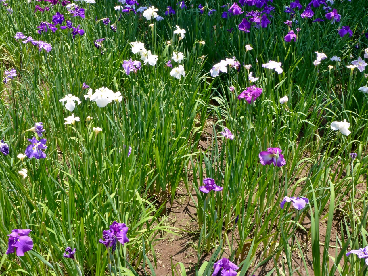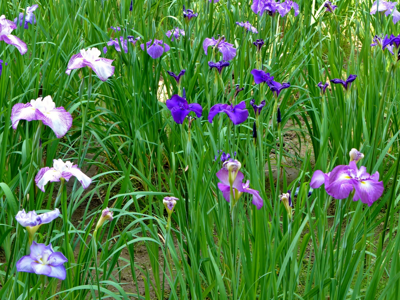 花菖蒲の見ごろは6月です、あまり広くはありませんが、瓢箪を伸ばしたような菖蒲田に色とりどりの花が咲いていました。