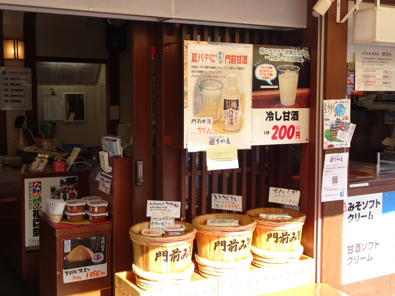 仲見世通りに入ってすぐ右側のところにある土産店です。ここのイチオシはなんといっても「みそソフト」です。風味豊かな信州味噌を使ったソフトクリームは絶品です。味噌の香ばしさとほのかな甘みで、ぜひここに立ち寄って食べていきたいところです。