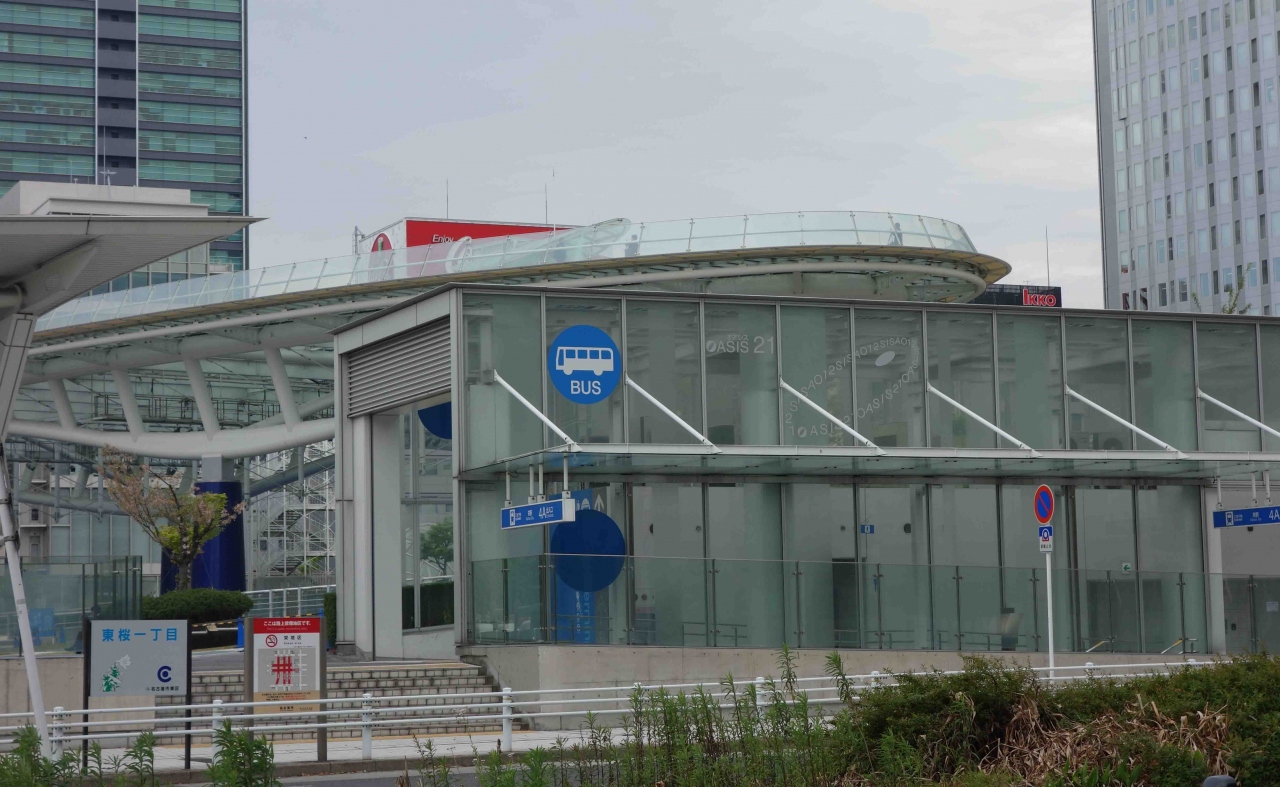 栄の立地の良いバスターミナル。錦通と久屋大通の交差点の北東のオアシス21と中日ビルと名古屋三越の間の南側部分に数多くのバス乗り場が並んでいます。近距離から中距離・長距離バスと各バス会社が乗り入れています。地下街経由で栄方面にアクセスできます。