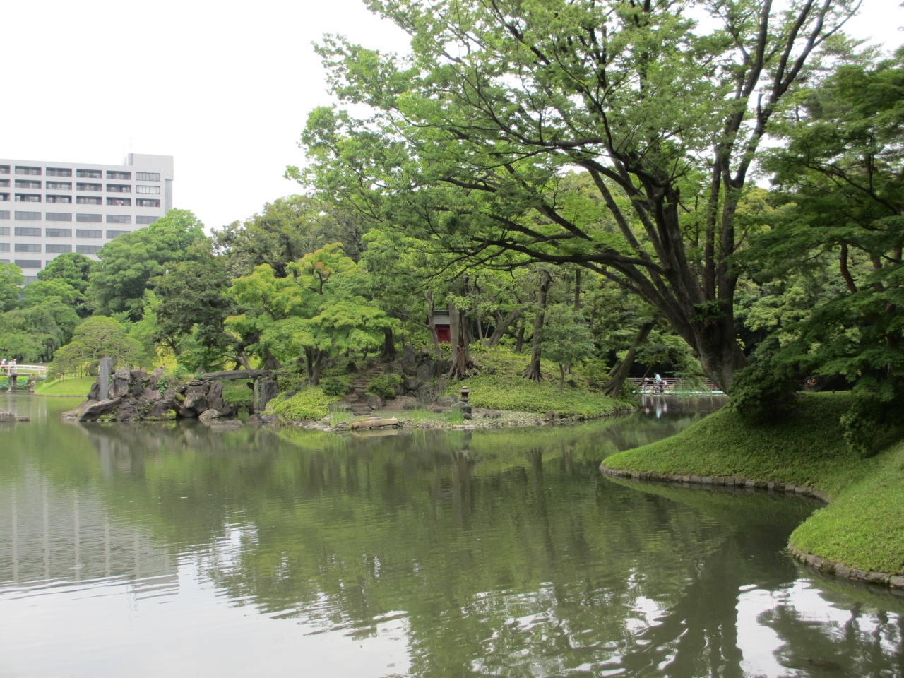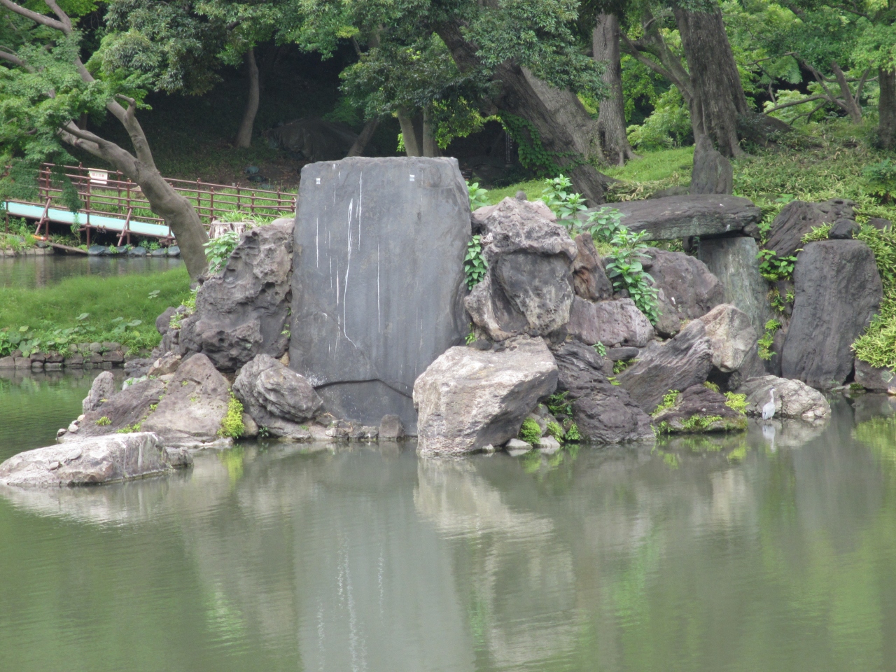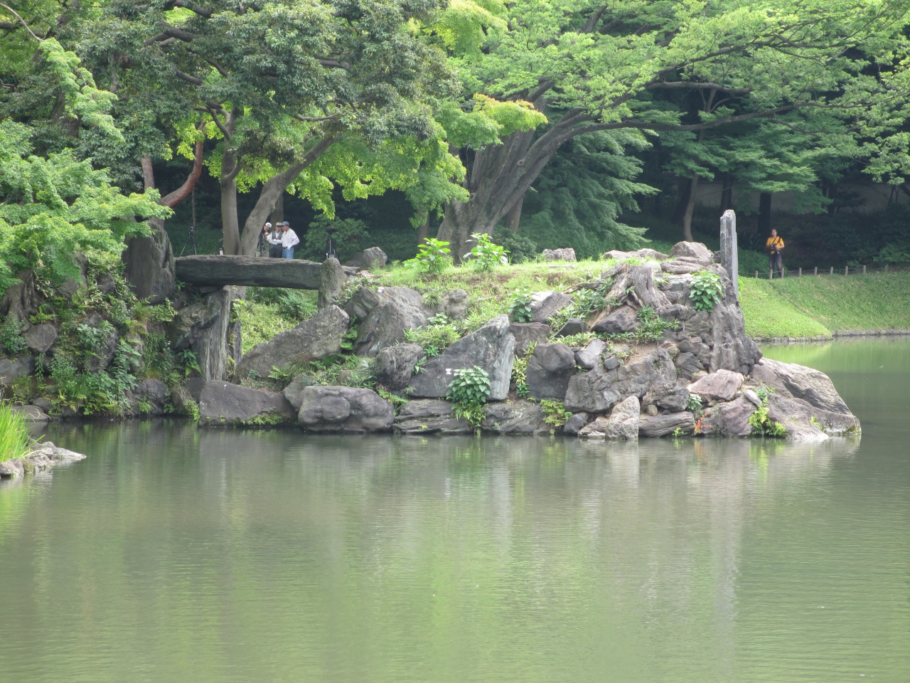 小石川後楽園にある琵琶湖を模した池、大泉水の中に浮かぶ島です。赤い鳥居があり弁才天が祀ってあります。対岸から見てもよくわからないのですが、亀の形をした島だそうです。島に大きな石が縦長に立っています。徳大寺石と呼ばれるもので、この島を造った人の名前だと言われています。小石川後楽園は木曽路、琵琶湖、京都など各名所を模して造られた庭園なので、この大きな石もいわれがあるように思うのですがガイドボランティアの方はわからないそうです。内庭から延段を通って紅葉林に出たところに三脚を立てたカメラマンが数人いました。この庭園に来るカワセミを撮るために一日中待機しているそうです。4日前に撮ったカワセミの画像を見せてもらいました。緑と水が豊富な所なので珍しい鳥が来るのでしょう。