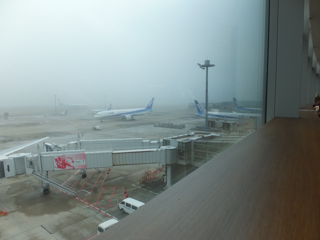 ターミナルの4階にある。駐機している飛行機が見放題という素晴らしさである。メニューはほぼファミレスである。味もほぼファミレス。朝の時間帯はモーニングしかやっていない。値段はやはり割高である。この日は写真のように濃霧で離発着不能になり、半日空港に足止めを食ったのである。